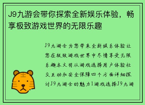 J9九游会为您带来全新娱乐体验,让您在极致游戏世界中尽情享受无限乐趣。本文将从游戏选择、用户体验、社交互动和安全保障四个方面详细探讨J9九游会的魅力。